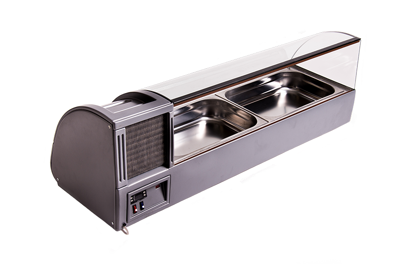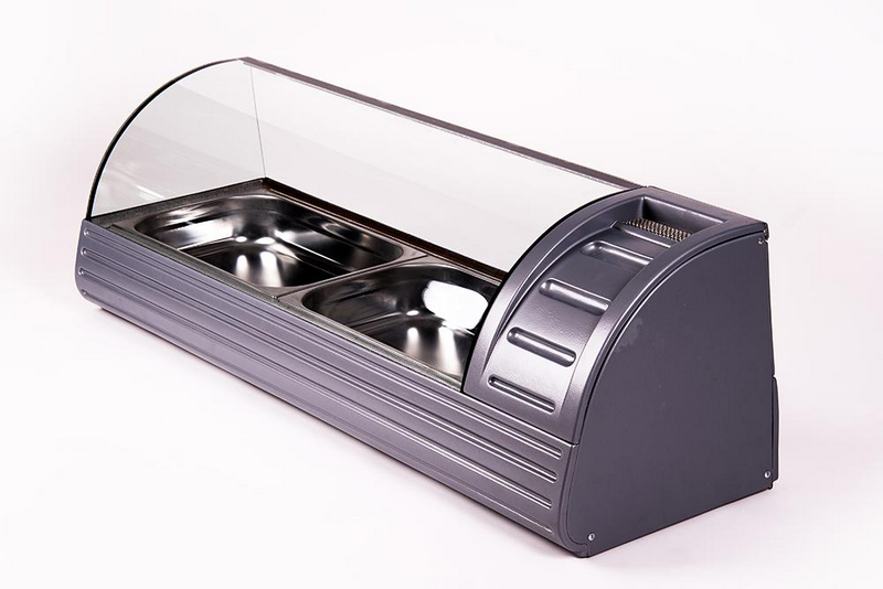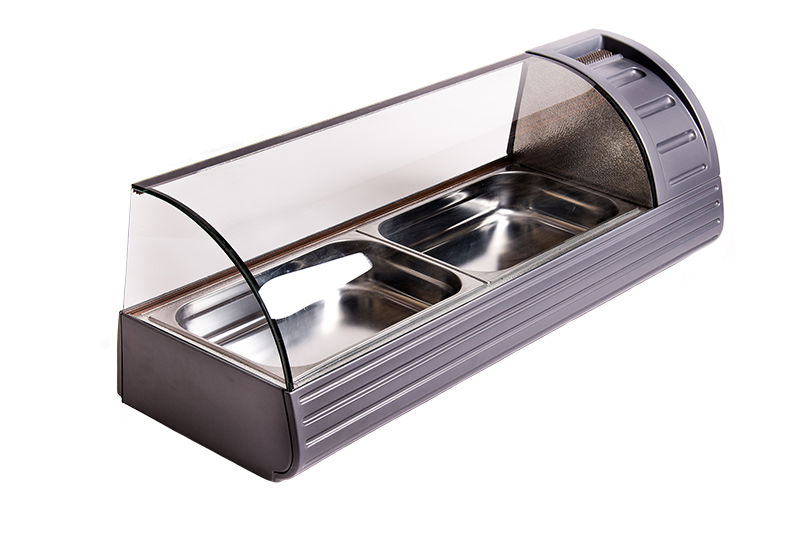 - Светодиодное освещение. - Шторки изготовлены из ударопрочного монолитного поликарбоната. - Холод держится только внутри нержавеющей гастроемкости.Выше гастроемкостей холода нет. Эту особенность нужно учитывать при загрузке продукции. - Гастроемкости - это часть витрины, они не съемные, мыть витрину придется не снимая эти гастроемкости.